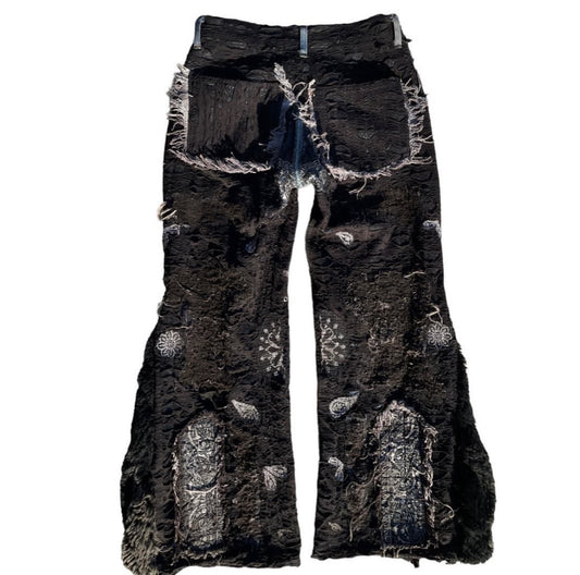 A MOH Faux-Fur Flared Spiked Denim jeans
