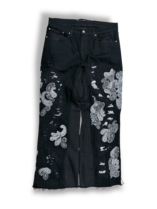 A MOH Faux-Fur Flared Spiked Denim jeans