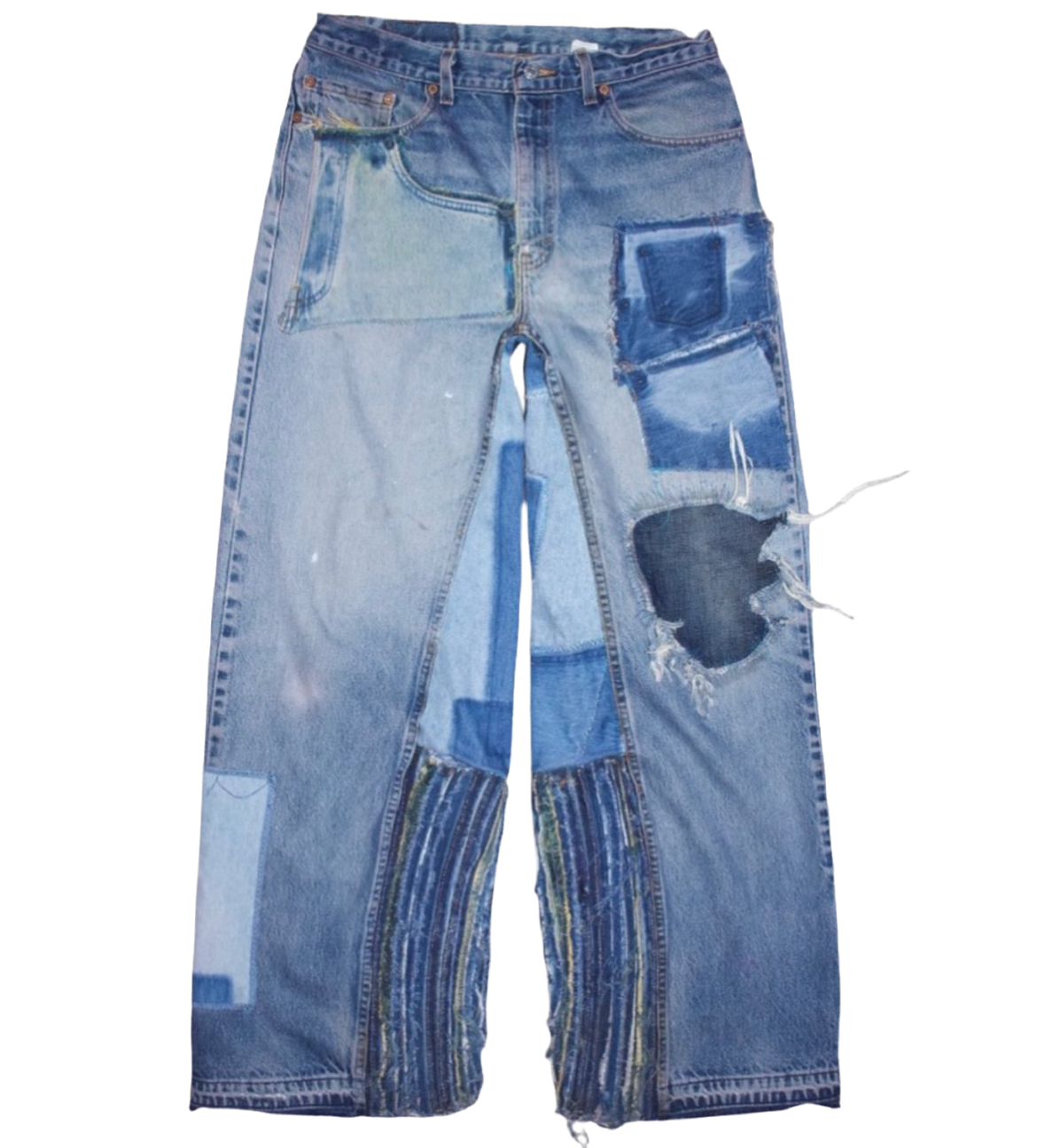 - @MYOWNHELLL Levis 1994 jeans heavily reconstructed and up cycled with various jeans and washes done with a custom inseam flare pattern 👖